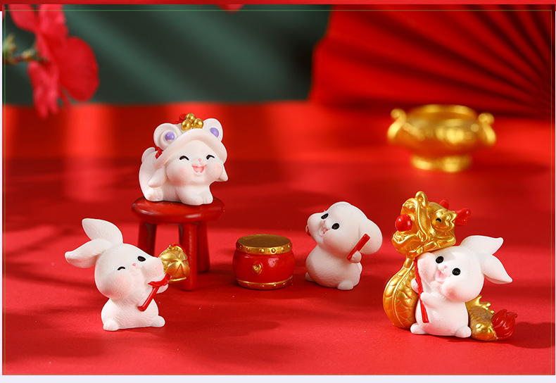 | Tên sản phẩm | Thỏ múa lân Tết, tiểu cảnh đáng yêu trang trí chậu cây resin mini (z-CJ-1349) |
